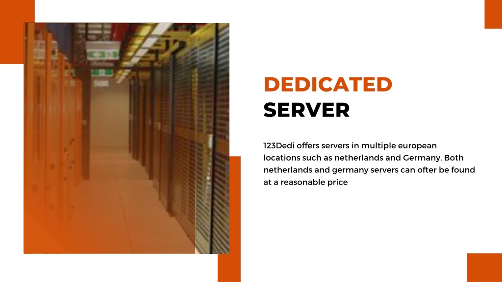 DEDICATED SERVER 123Dedi offers servers in multiple european locations such as netherlands and Germany. Both netherlands and germany servers can ofter be found at a reasonable price