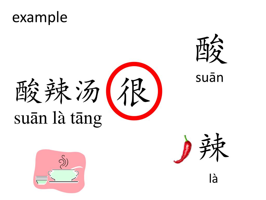 example 酸 酸辣汤 很 suān suānlàtāng 辣 là