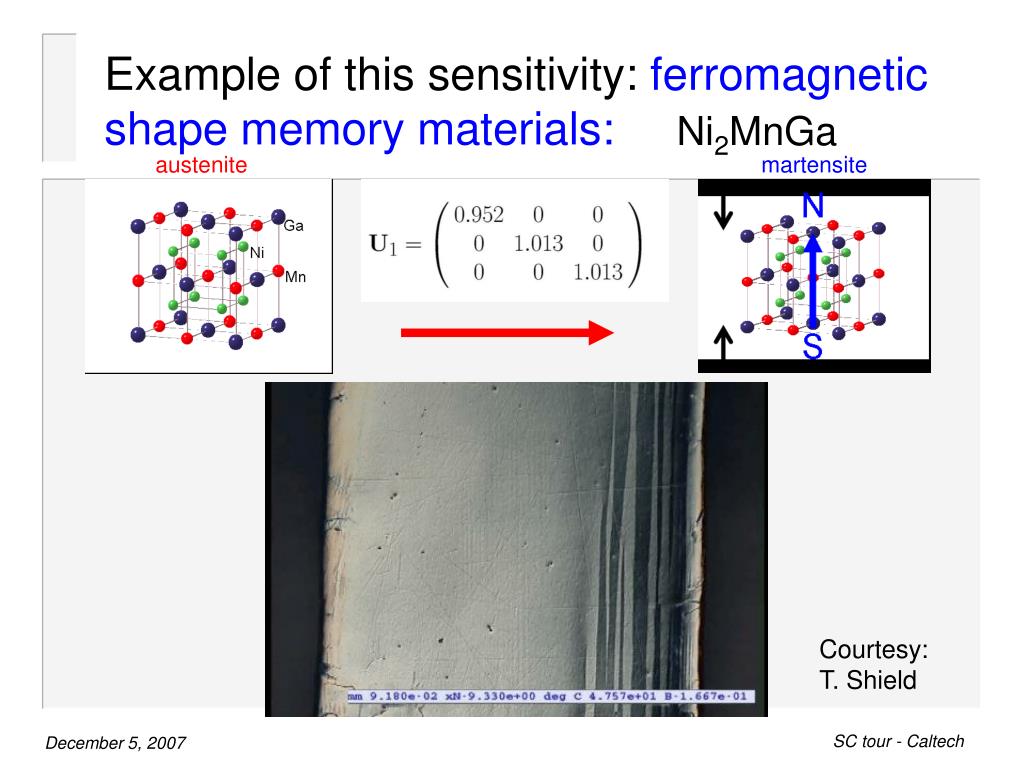 Example of this sensitivity: ferromagnetic shape memory materials: Ni2MnGa austenite martensite Courtesy: T. Shield