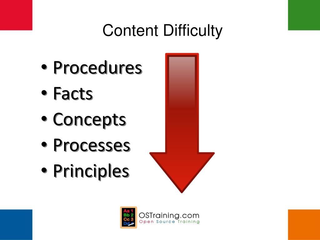 Content Difficulty • Procedures • Facts • Concepts • Processes • Principles