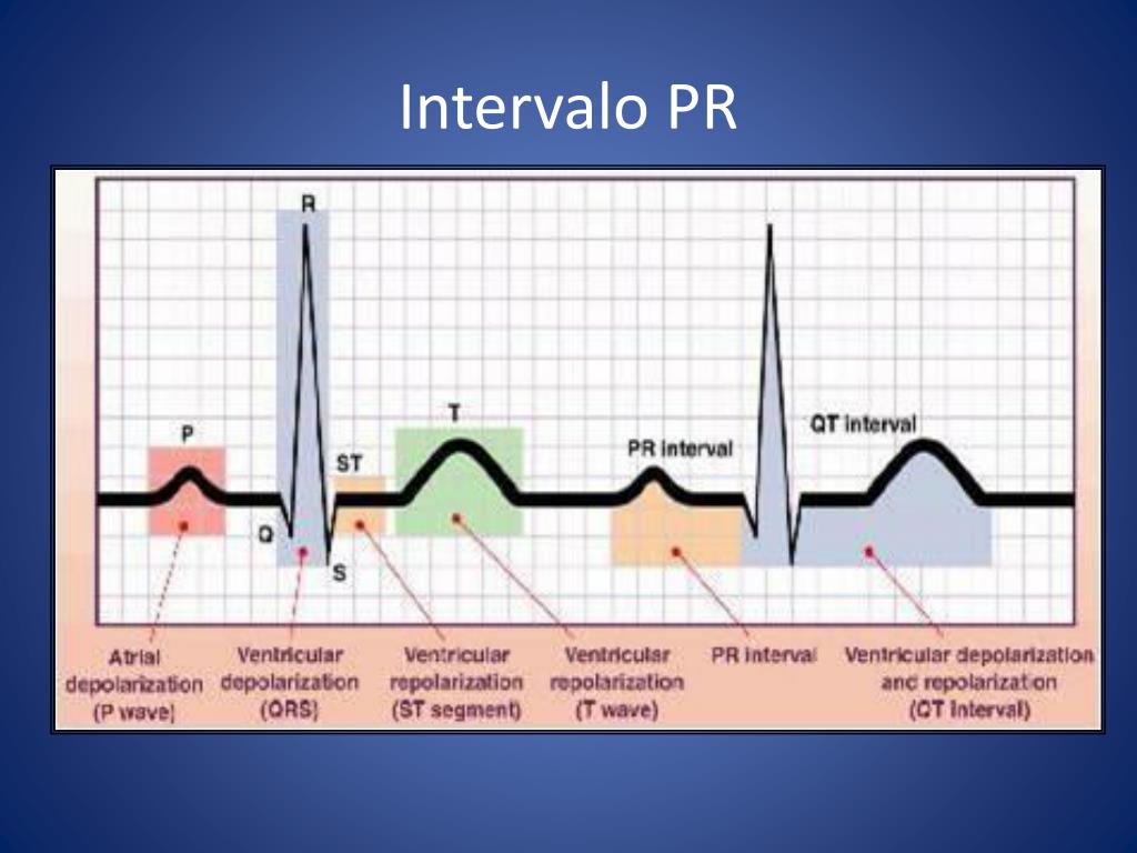 Intervalo QT Mide desde el inicio del QRS hasta el final de la onda T Representa la sístole eléctrica ventricular Medida depende de la FC Acorta FC altas Alarga FC bajas QTc 0.44 s. Fórmula de Bazett Fórmula Hegglin y Holzmann QT= 0,39x√intervalo RR