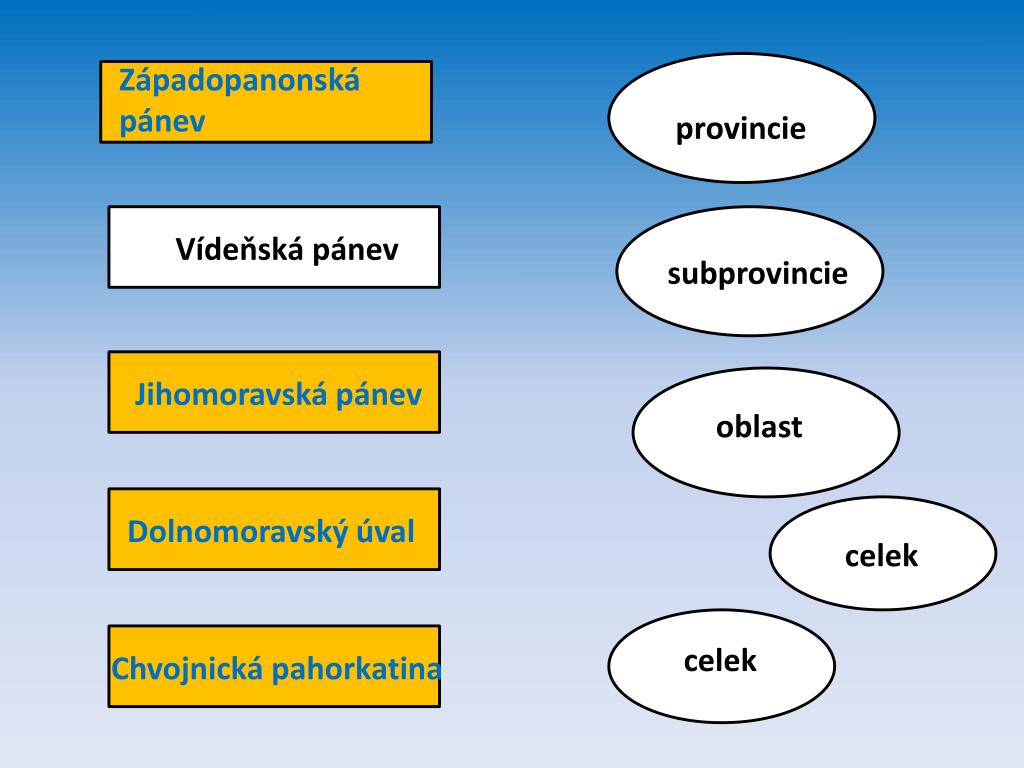 Doplň podle atlasu geomorfologické jednotky. provincie Vídeňská pánev Vídeňská pánev subprovincie oblast celek celek