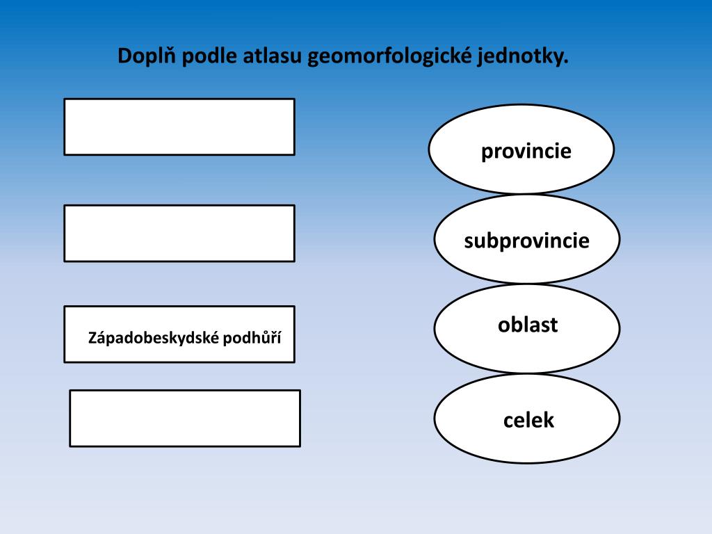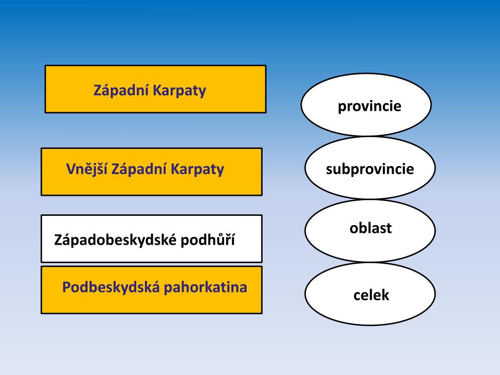 Doplň podle atlasu geomorfologické jednotky. provincie subprovincie Zá oblast Západobeskydské podhůří celek