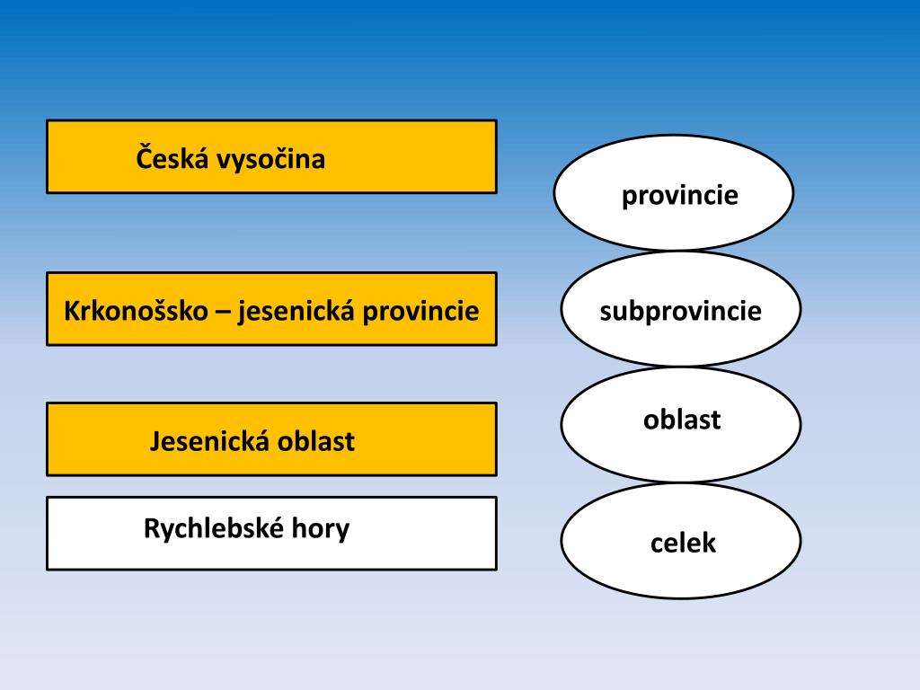 Česká vysočina provincie Krkonošsko – jesenická provincie subprovincie oblast Jesenická oblast Rychlebské hory celek