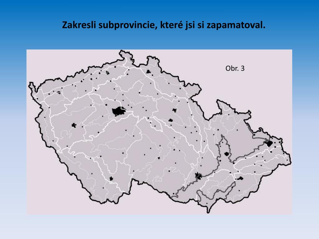 Geomorfologické subprovincie(soustavy ČR) K jaké provincii náleží subprovincie pod mapkou? Obr. 2 Česká tabule Krušnohorská Šumavská Česko - moravská Krkonošsko - jesenická Poberounská