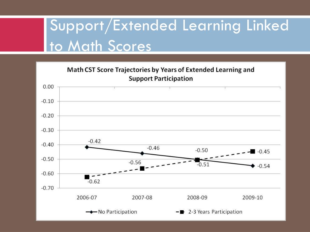 Study Population Schools: Four schools—one K-8, two K-5s, one 6-8 Programs: 64 total programs for students and parents across the four schools Students: 3,000 per year, 1,522 all three years: 87% Latino, 7% White 71% FRPL, 64% English learner 62% K-5, 38% 6-8
