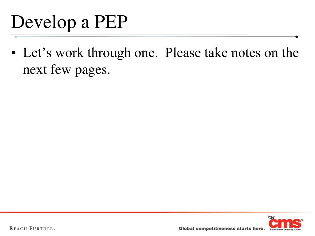Develop a PEP– All Let’s work through one. Please take notes on the next few pages.