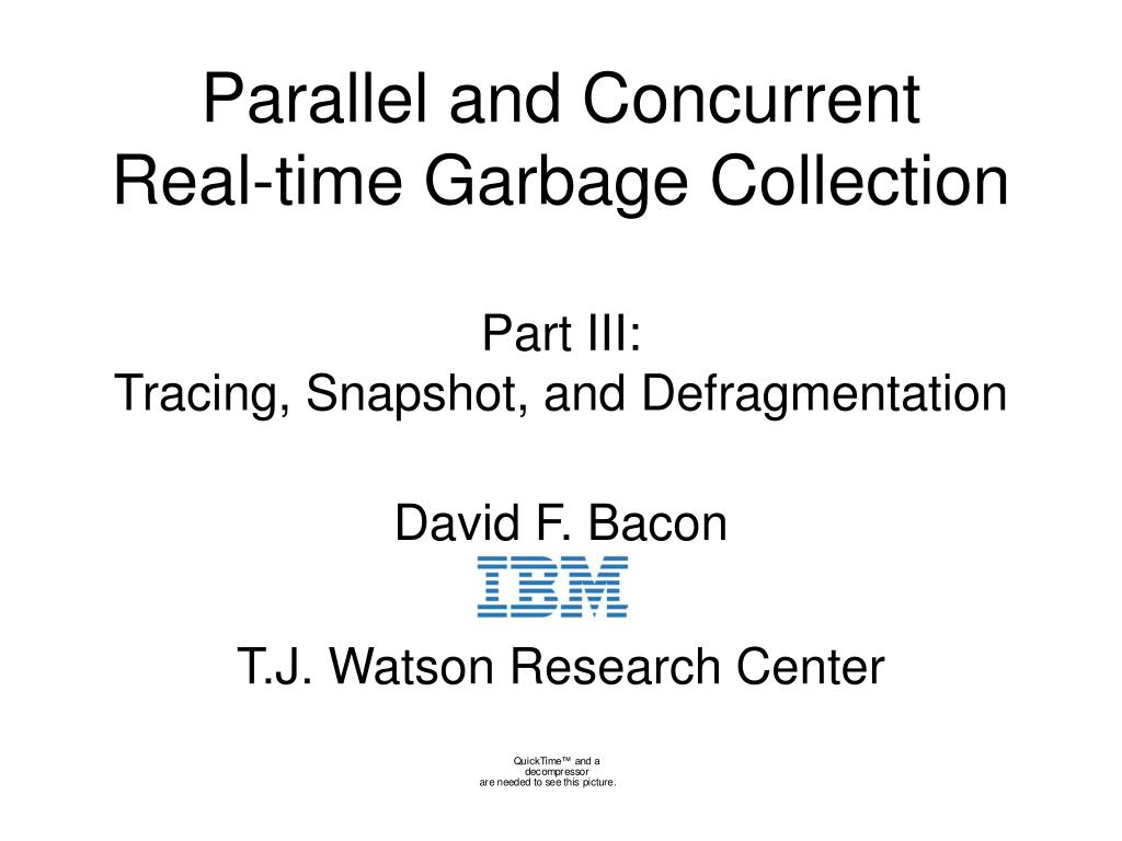 Parallel and ConcurrentReal-time Garbage CollectionPart III:Tracing, Snapshot, and Defragmentation David F. Bacon T.J. Watson Research Center