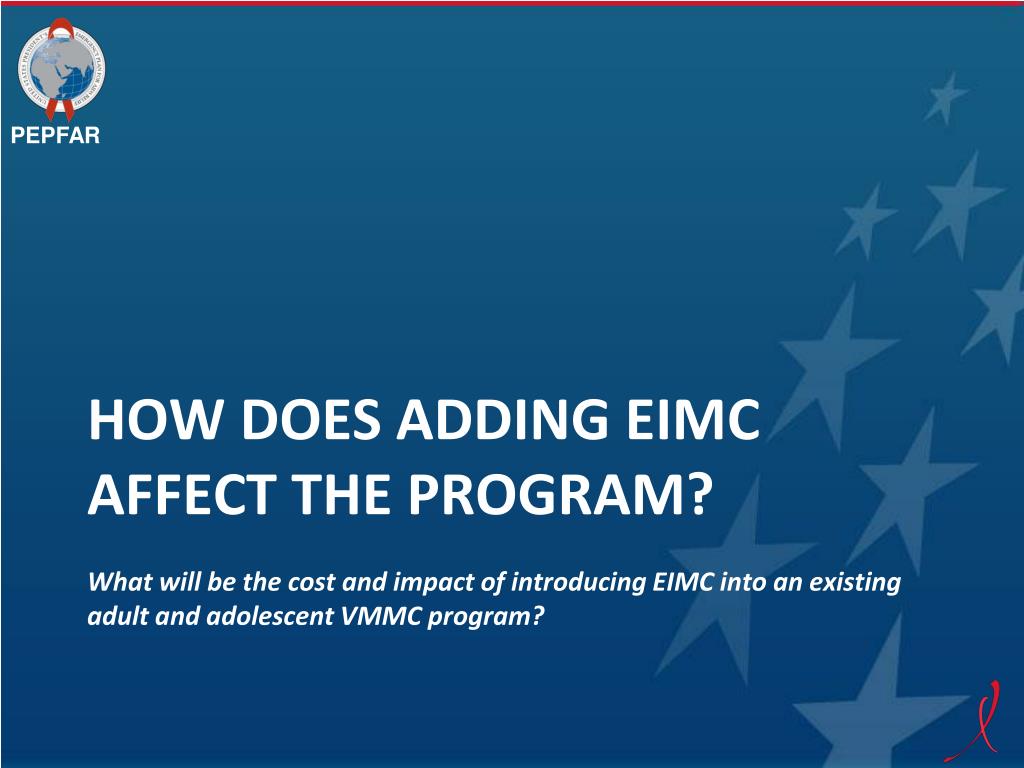 Cost and Impact of Scaling Up EIMC in Southern and Eastern Africa using the DMPPT 2.0 Model. Emmanuel Njeuhmeli , MD, MPH, MBA Senior Biomedical Prevention Advisor and Co-Chair PEPFAR Male Circumcision Technical Working Group Office of HIV/AIDS / Global Health Bureau,