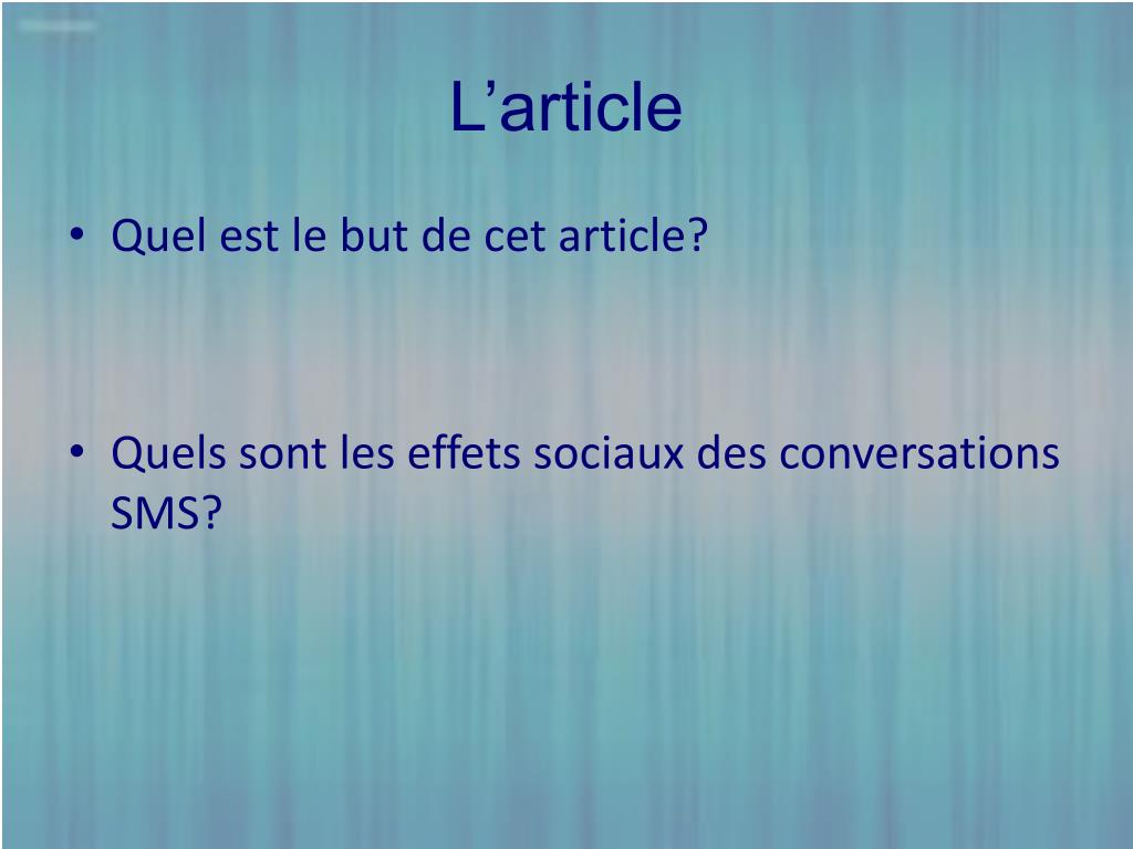 L’article • Quelest le but de cet article? • Quelssont les effetssociaux des conversations SMS?