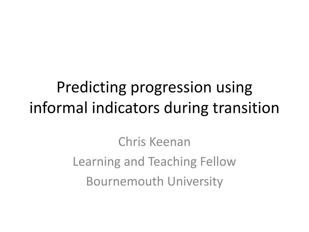 Predicting progression using informal indicators during transition. Chris Keenan Learning and Teaching Fellow Bournemouth University. This session will:.