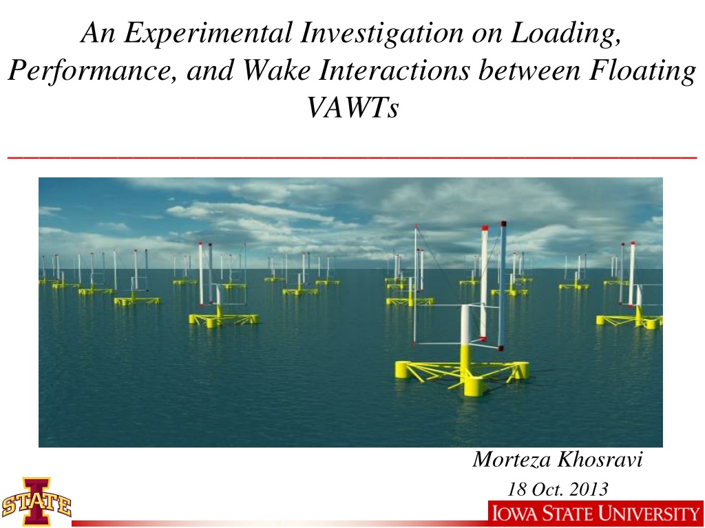An Experimental Investigation on Loading, Performance, and Wake Interactions between Floating VAWTs ____________________________________________ Morteza Khosravi 18 Oct. 2013