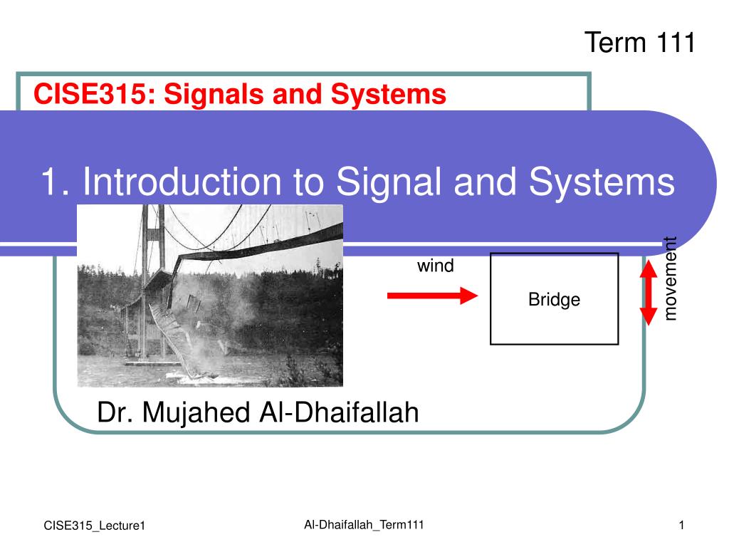 wind Bridge movement Term 111 CISE315: Signals and Systems 1. Introduction to Signal and Systems Dr. MujahedAl-Dhaifallah Al-Dhaifallah_Term111