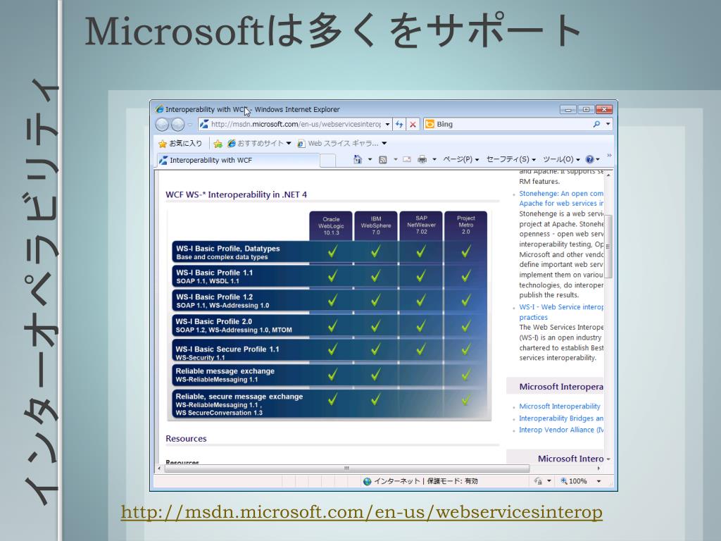 Microsoftは多くをサポート インターオペラビリティ http://msdn.microsoft.com/en-us/webservicesinterop
