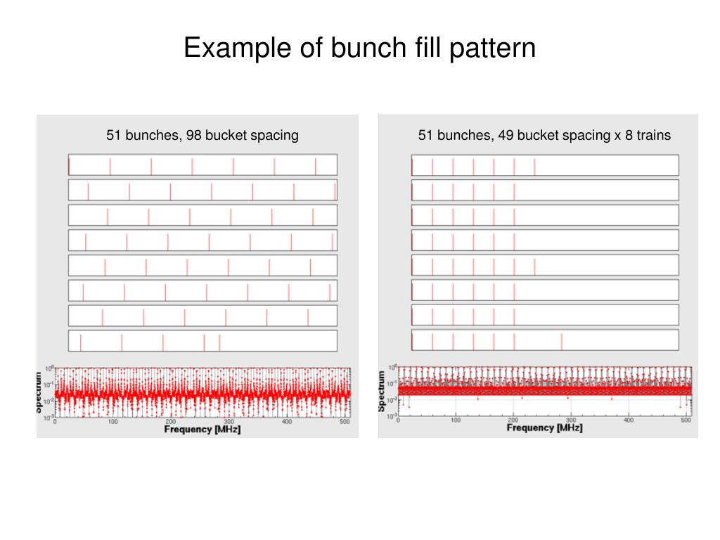 Example of bunch fill pattern 51 bunches, 98 bucket spacing 51 bunches, 49 bucket spacing x 8 trains