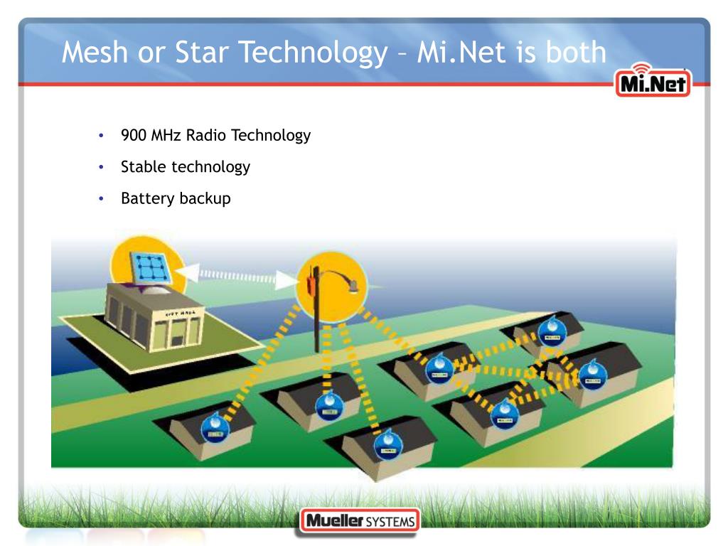Mesh or Star Technology – Mi.Net is both • 900 MHz Radio Technology • Stable technology • Battery backup