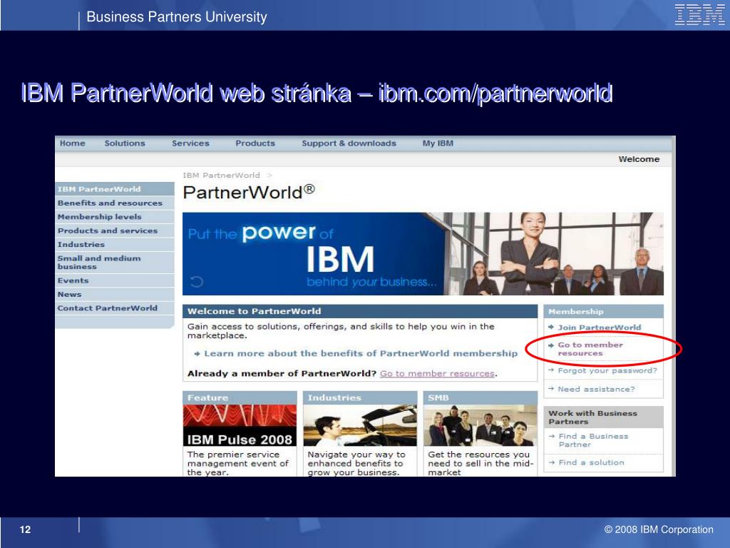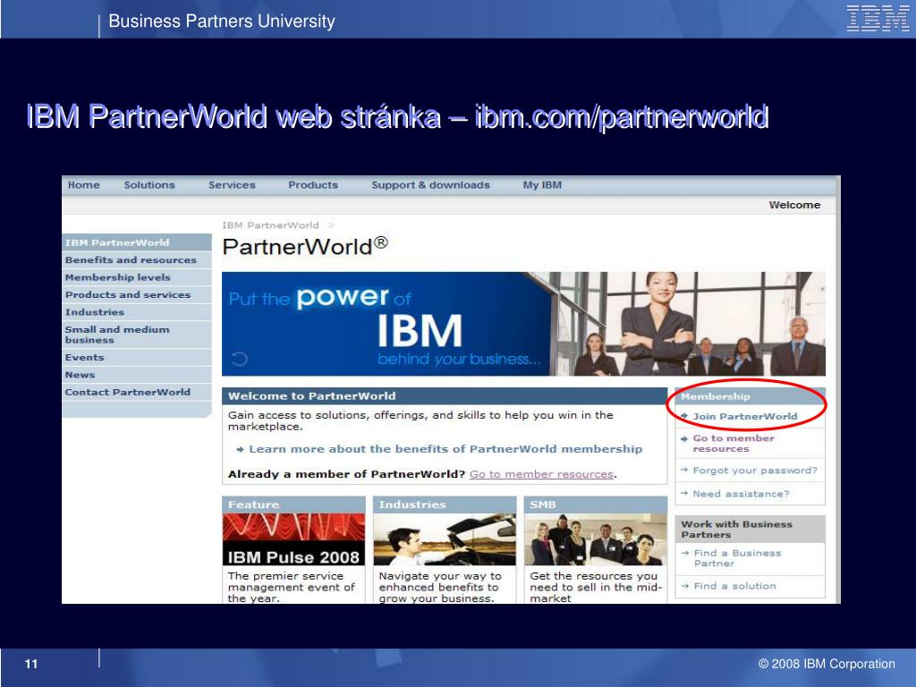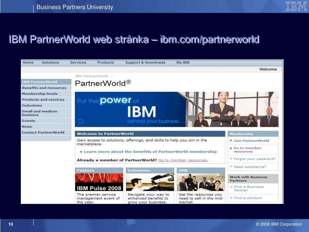 IBM PARTNER WORLD • Oblasti podpory v PartnerWorldu • Obchodní • Marketingová • Technická • Vzdělávání • Spolupráce