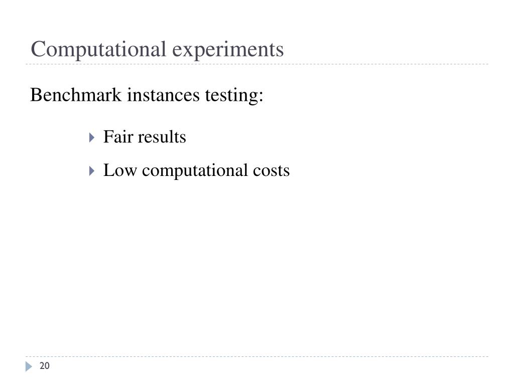 Computational experiments • Fair results • Lowcomputationalcosts Benchmark instancestesting:
