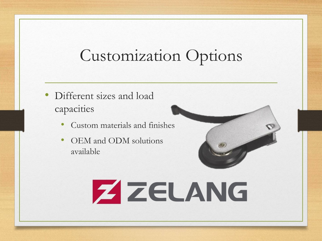 9. Customization Options • Different sizes and load capacities • Custom materials and finishes • OEM and ODM solutions available