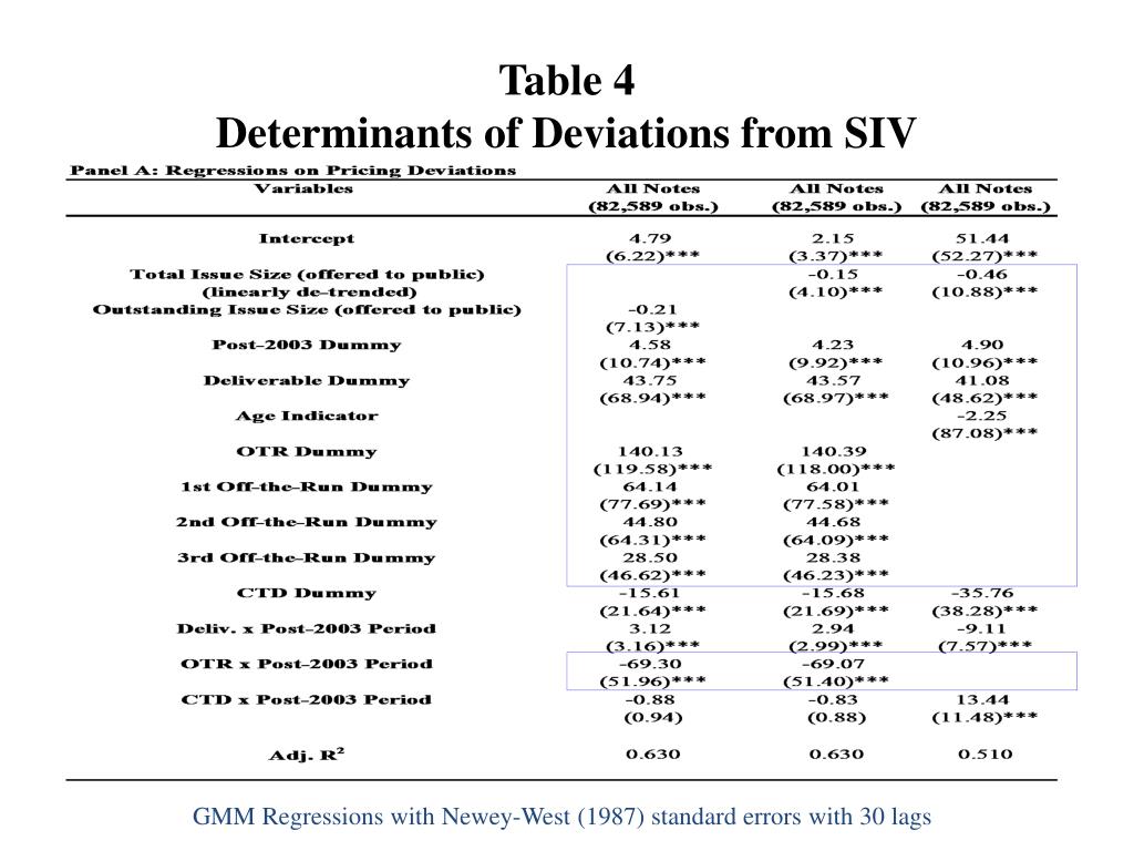Table 4Determinants of Deviations from SIV GMM Regressions with Newey-West (1987) standard errors with 30 lags