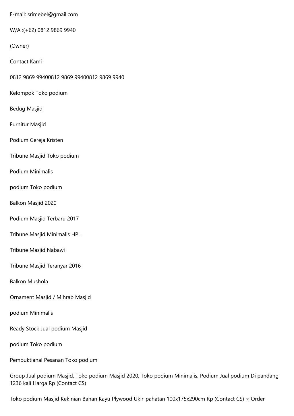 Pengiriman Lihat Detail Cari Toko podium Search for: Kontak Kami JAM KERJA WORKSHOP: Senin - Jum'at: 07.30 - 21.00 Sabtu : 08.00 - 16.00 Minggu: 08.00 - 16.00 Mobile : (+62) 0812 9869 9940 E-mail: srimebel@gmail.com W/A :(+62) 0812 9869 9940 Asep Amin Musyafa' (Owner) Contact Kami 0812 9869 9940 0812 9869 9940 0812 9869 9940 Group Toko podium Bedug Masjid Mebel Masjid Balkon Gereja Kristen Tribun Masjid Toko podium Tribune Minimalis podium Toko podium Tribune Masjid 2020 Balkon Masjid Terkini 2017 Tribun Masjid Minimalis HPL