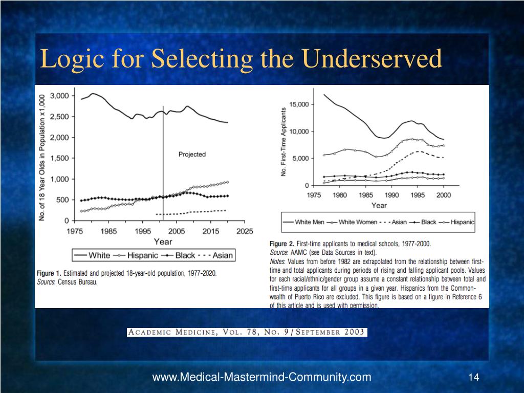Logic for Selecting the Underserved • N = 20,112 (64% of graduates in 2003-2004 on an AAMC survey) www.Medical-Mastermind-Community.com