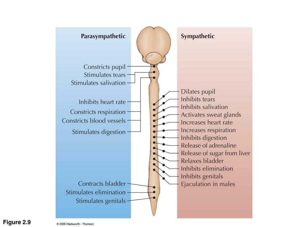 Two Divisions of the Autonomic Nervous System • Sympathetic: Arouses body; emergency system • Parasympathetic: Quiets body; most active after an emotional event
