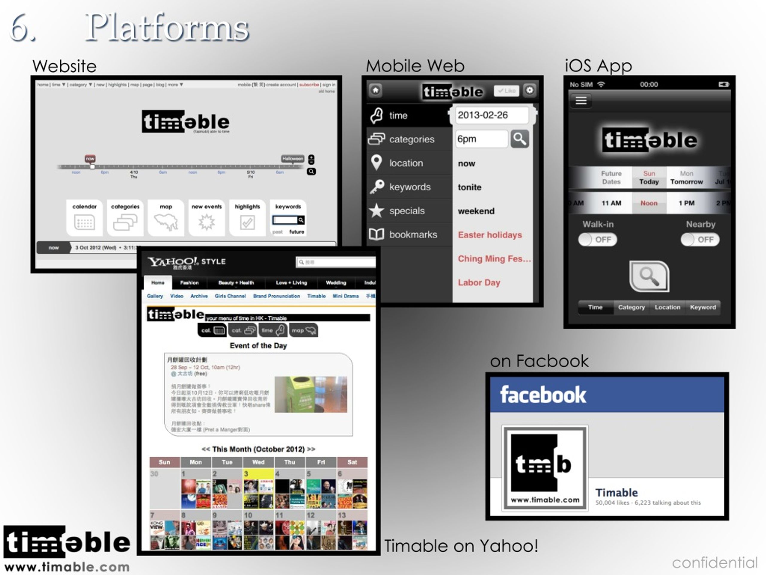 7. 6. Platforms iOS App Mobile Web Website on Facbook Timable on Yahoo!
