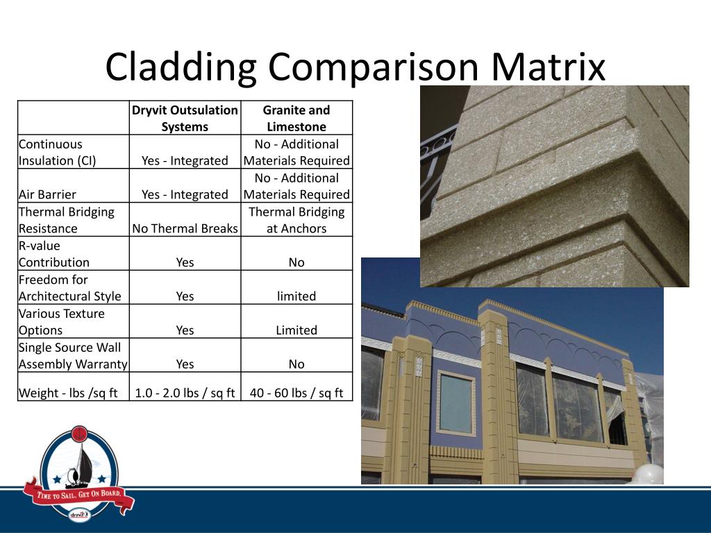 Cladding Comparison Matrix Dryvit Outsulation vs. Granite & Limestone