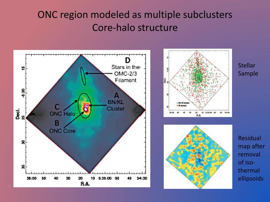 ONC region modeled as multiple subclustersCore-halo structure Stellar Sample Residual map after removal of iso- thermal ellipsoids