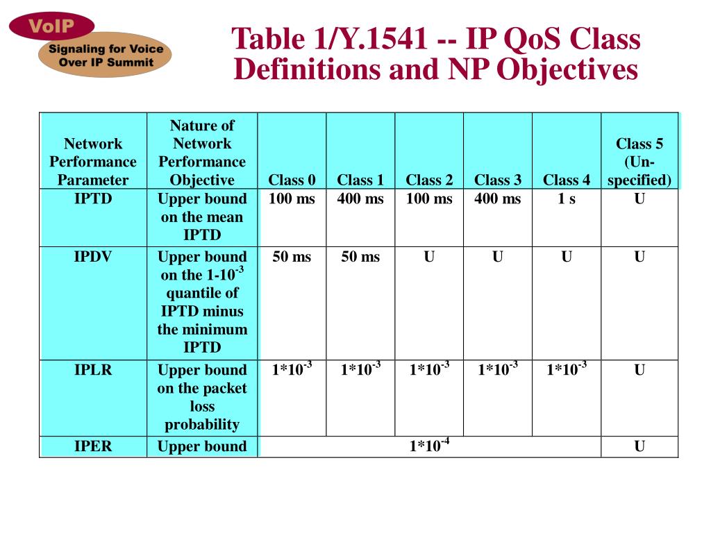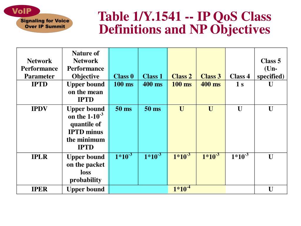 Table 1/Y.1541 -- IP QoS Class Definitions and NP Objectives