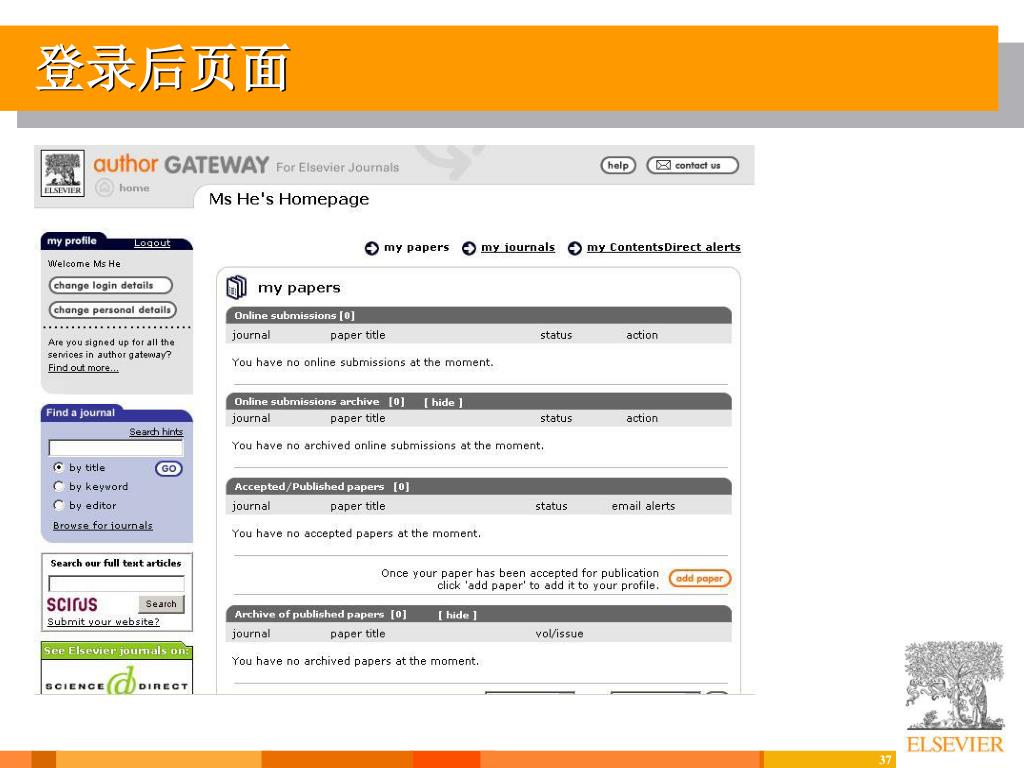 作者服务http://authors.elsevier.com 注册 选择期刊投稿 跟踪稿件处理过程