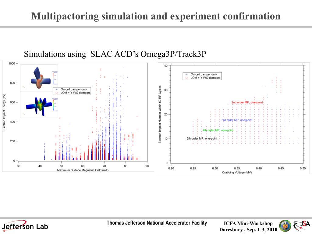 Multipactoring simulation and experiment confirmation Simulations using SLAC ACD’s Omega3P/Track3P