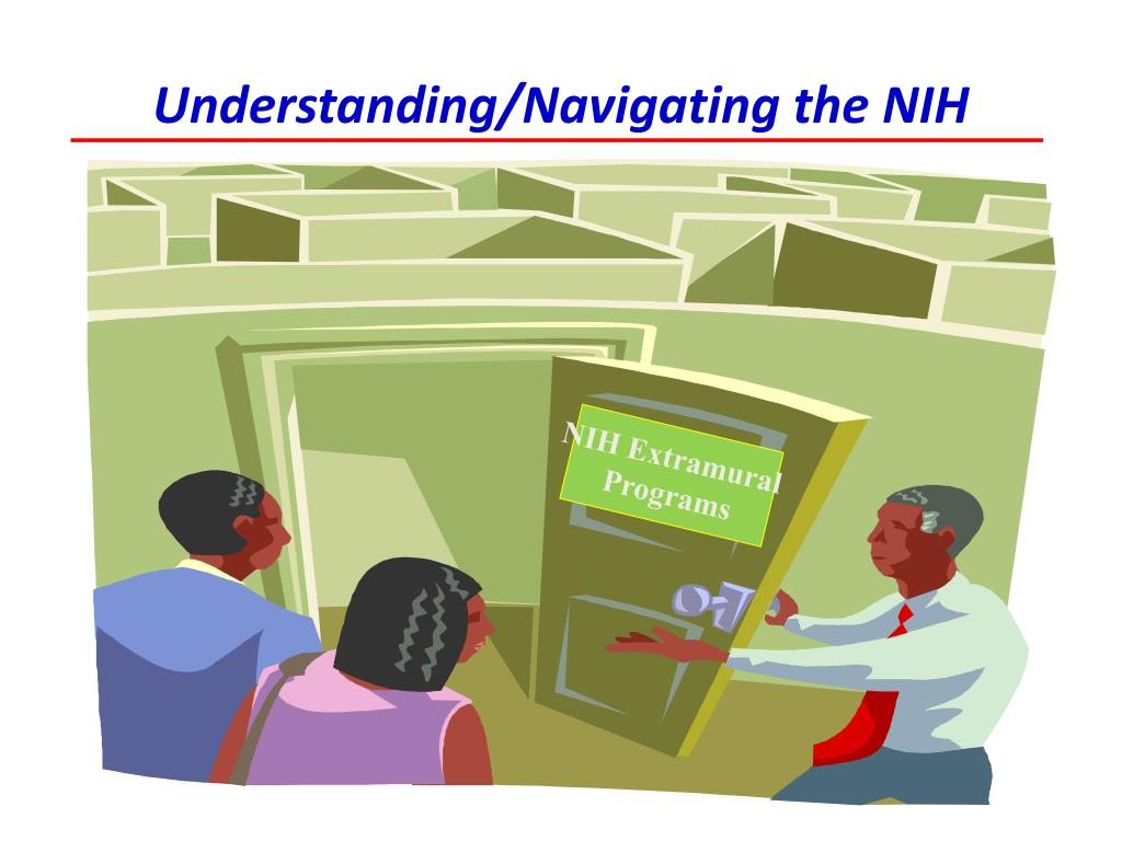 NIH – 27 Institutes and Centers Office of the Director National Institute on Aging National Institute on Alcohol Abuse and Alcoholism National Institute of Allergy and Infectious Diseases National Institute of Arthritis and Musculoskeletal and Skin Diseases National Cancer Institute National Institute of Child Health and Human Development National Institute on Deafness and Other Communication Disorders National Institute of Dental and Craniofacial Research National Institute of Diabetes and Digestive and Kidney Diseases National Institute on Drug Abuse National Institute of Environmental Health Sciences National Eye Institute National Institute of General Medical Sciences National Heart, Lung, and Blood Institute National Human Genome Research Institute National Institute of Mental Health National Institute of Neurological Disorders and Stroke National Institute of Nursing Research National Institute on Minority Health and Health Disparities National Center for Complementary and Alternative Medicine National Center on Minority Health and Health Disparities Fogarty International Center National Center for Research Resources National Library of Medicine National Institute of Biomedical Imaging and Bioengineering Clinical Center Center for Information Technology Center for Scientific Review no funding authority Different Missions, Responsibilities and Constituencies