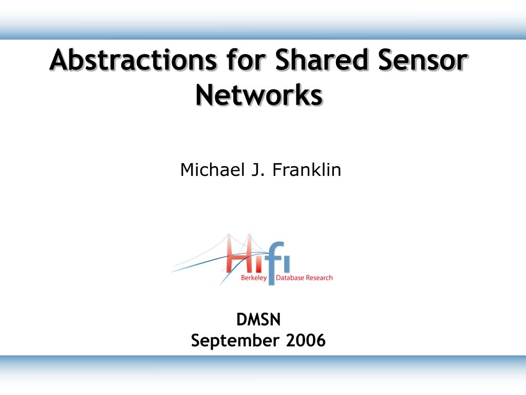 Abstractions for Shared Sensor Networks Michael J. Franklin DMSN September 2006