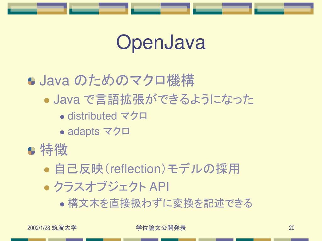 OpenJava Java 言語のためのオブジェクト指向マクロ 学位論文公開発表