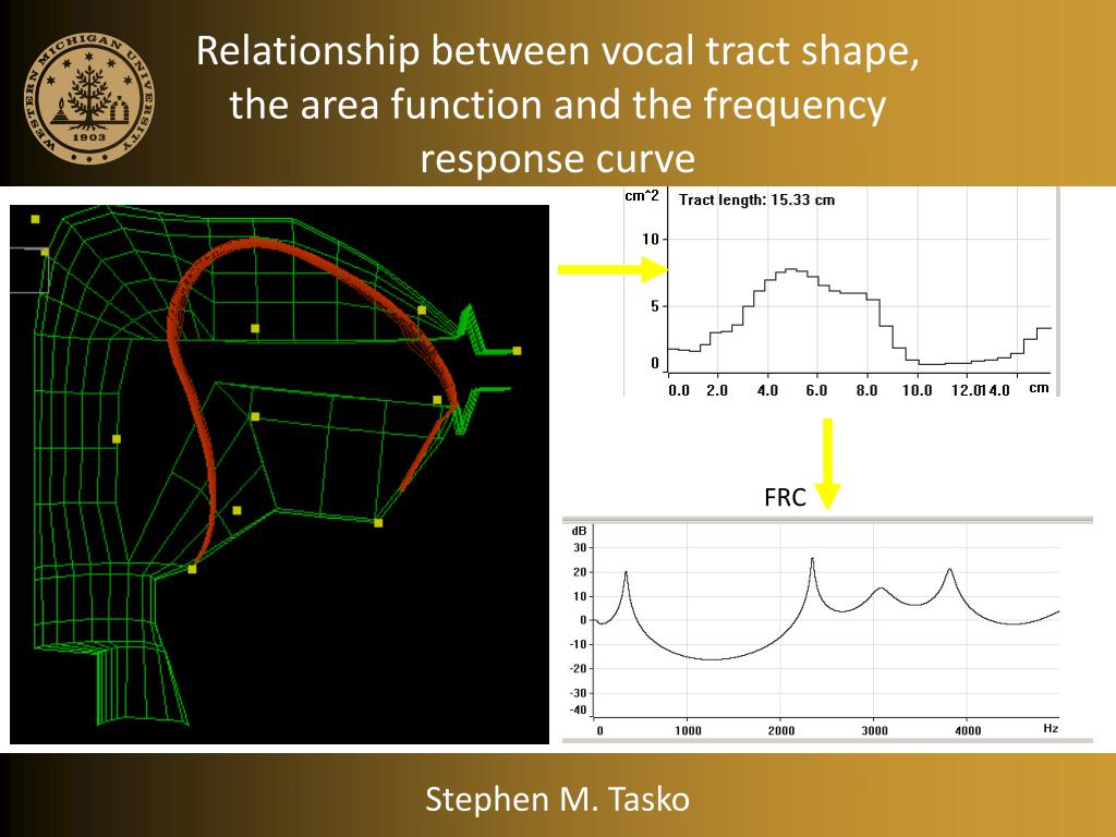 Relationship between vocal tract shape, the area function and the frequency response curve FRC Stephen M. Tasko