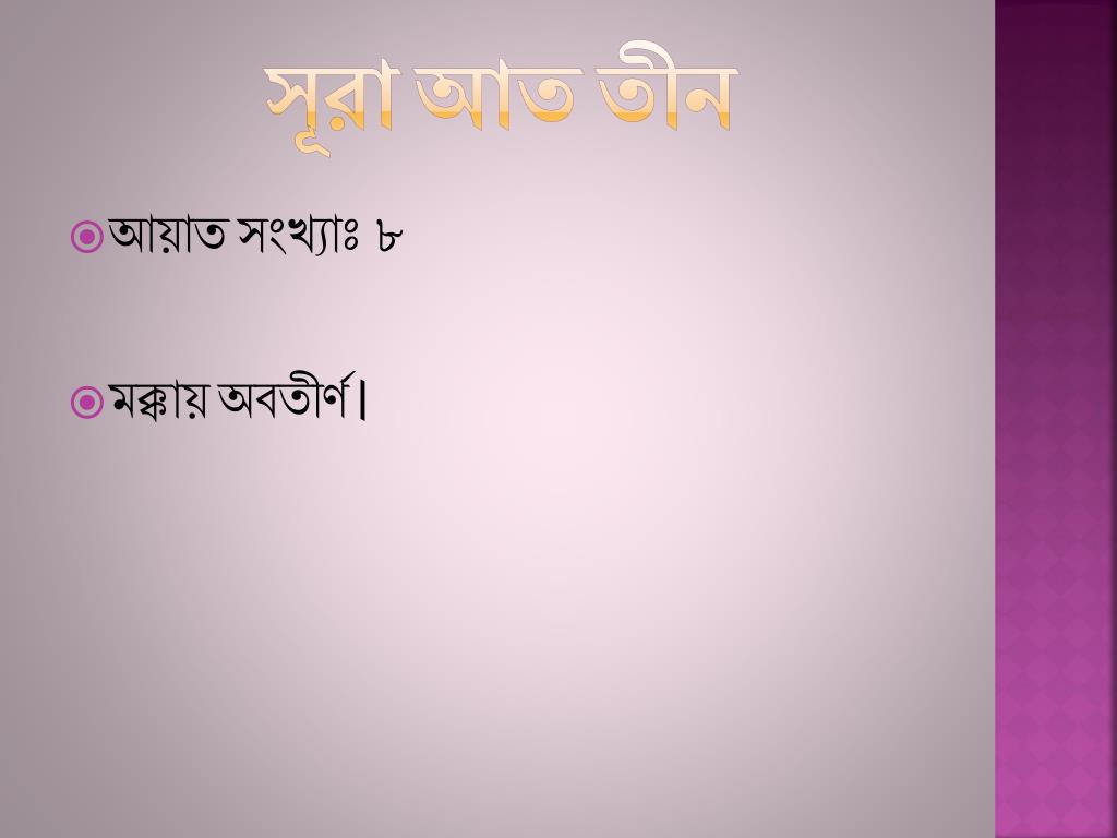 সূরা আত তীন • আয়াত সংখ্যাঃ ৮ • মক্কায় অবতীর্ণ।