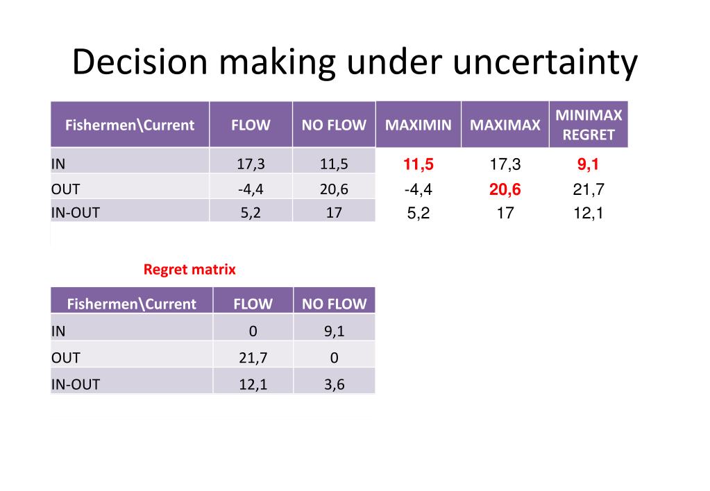 Decisionmaking under uncertainty Regretmatrix