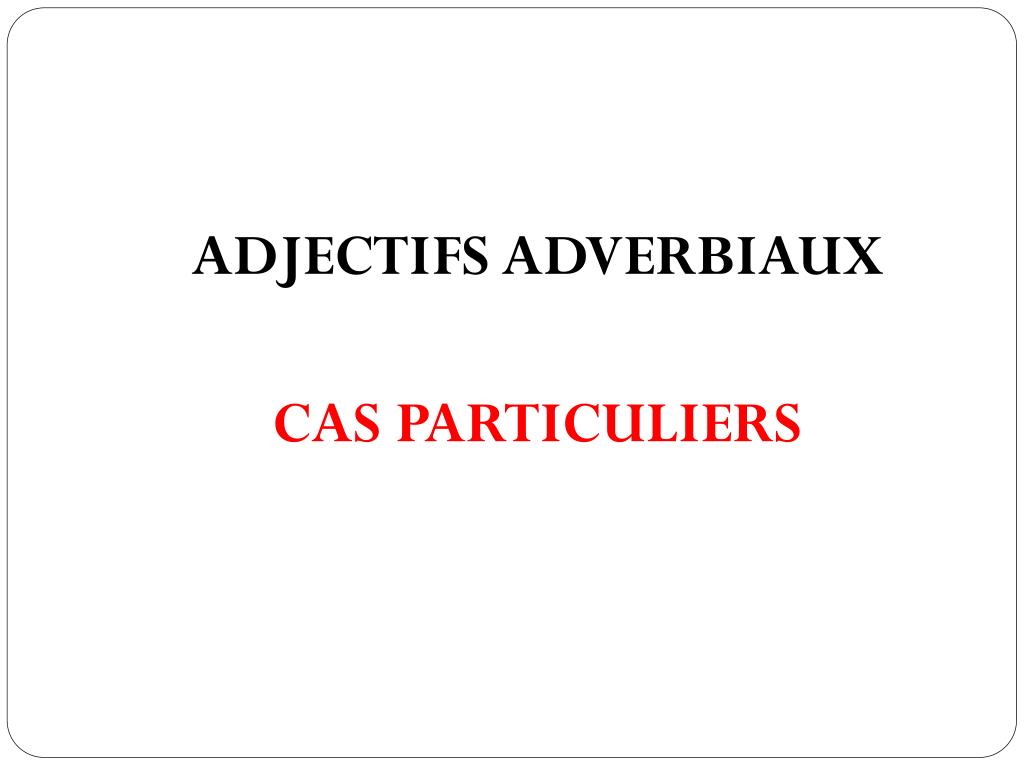 ADJECTIFS ADVERBIAUX CAS PARTICULIERS