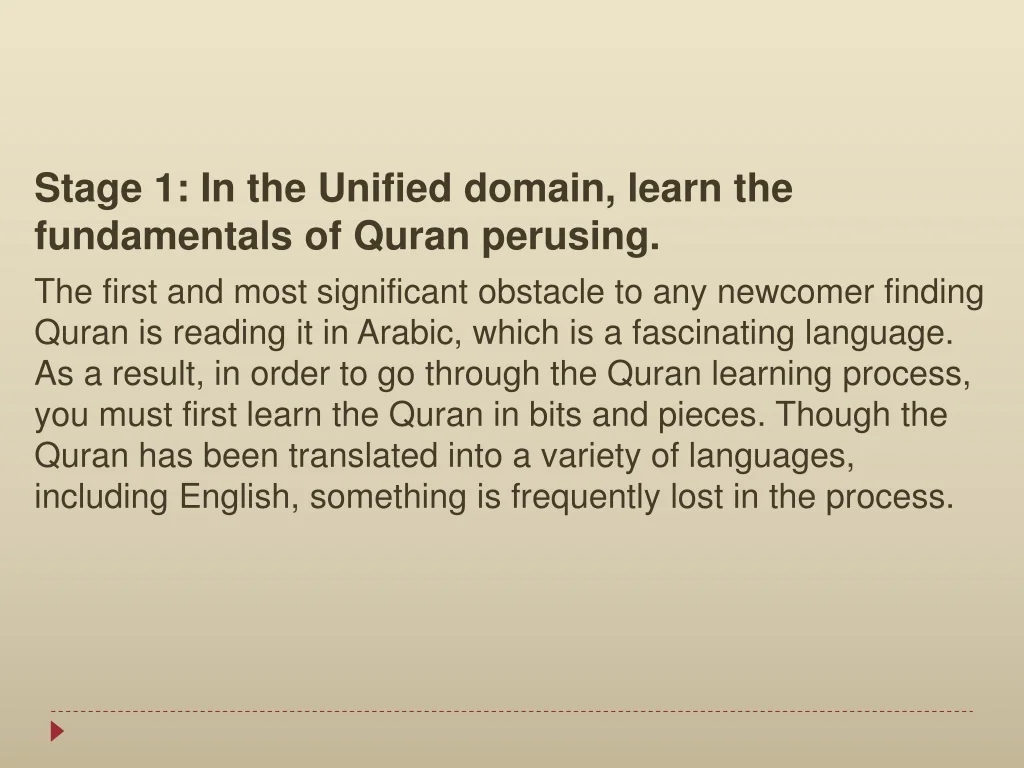 Stage 1: In the Unified domain, learn the fundamentals of Quran perusing. The first and most significant obstacle to any newcomer finding Quran is reading it in Arabic, which is a fascinating language. As a result, in order to go through the Quran learning process, you must first learn the Quran in bits and pieces. Though the Quran has been translated into a variety of languages, including English, something is frequently lost in the process.