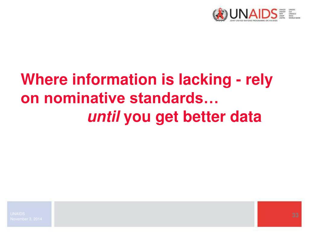 Where information is lacking - rely on nominative standards…until you get better data UNAIDS