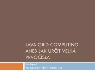 Java Grid Computing aneb jak určit velká prvočísla Petr Papež Vedoucí práce: RNDr. Jaroslav Icha