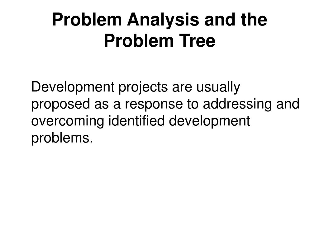 Problem Analysis and the Problem Tree Development projects are usually proposed as a response to addressing and overcoming identified development problems.