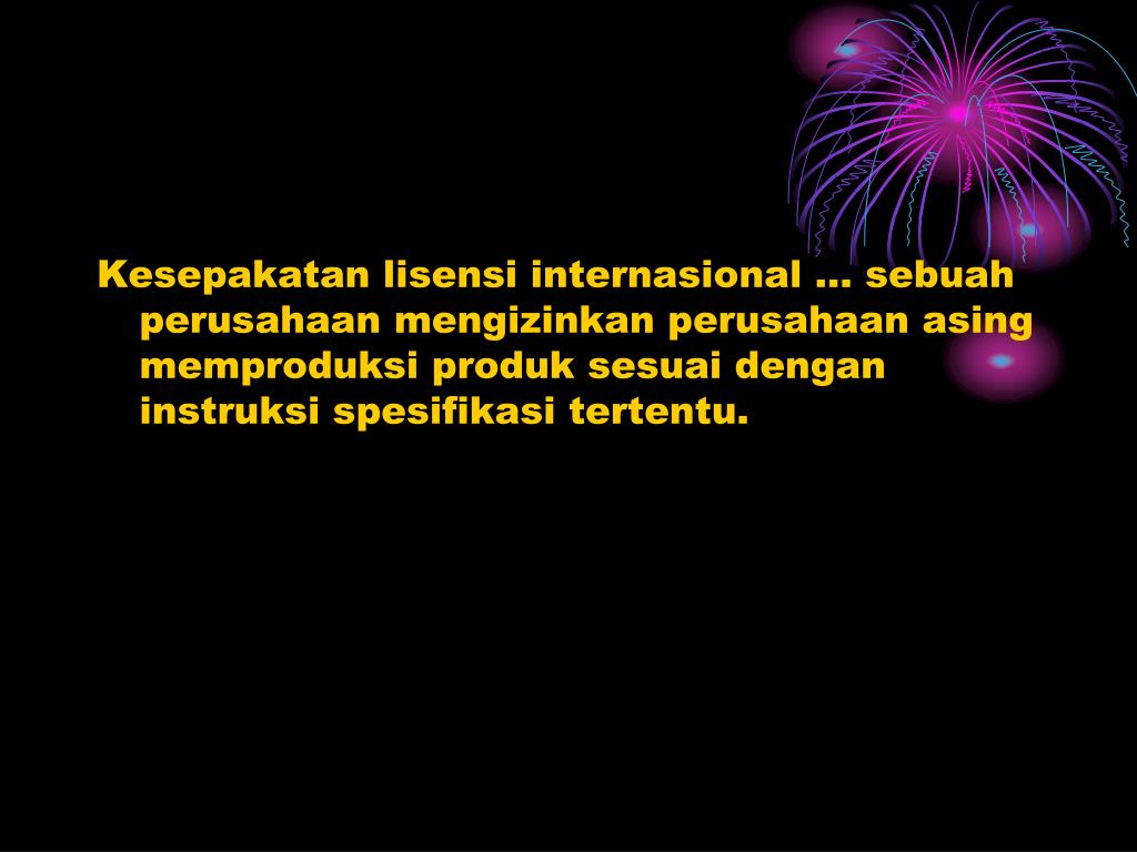 Kesepakatan lisensi internasional … sebuah perusahaan mengizinkan perusahaan asing memproduksi produk sesuai dengan instruksi spesifikasi tertentu.
