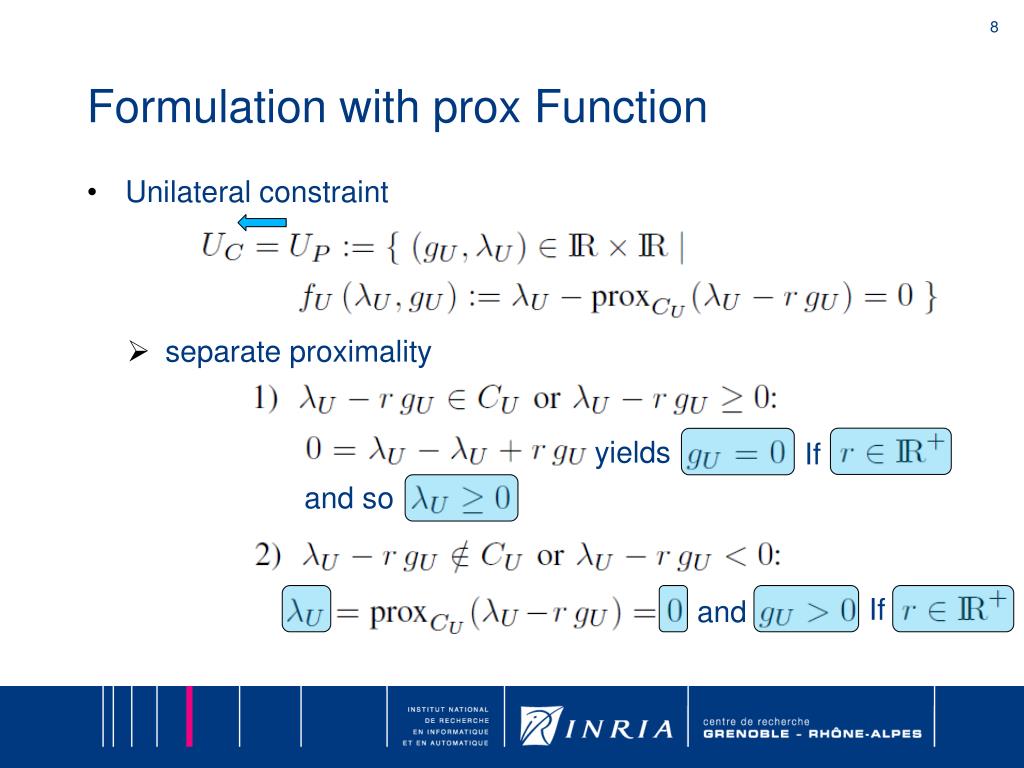 Formulation with prox Function Unilateral constraint • separateproximality yields If andso If and