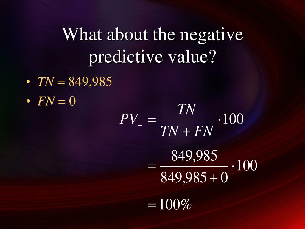 What about the negative predictive value? • TN = 849,985 • FN = 0