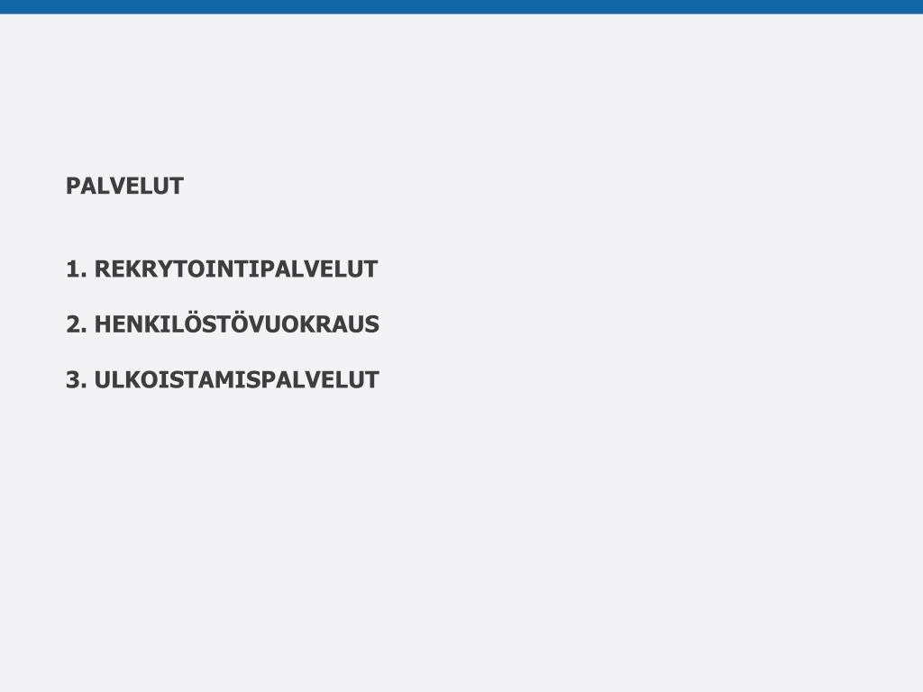 PALVELUT 1. REKRYTOINTIPALVELUT 2. HENKILÖSTÖVUOKRAUS 3. ULKOISTAMISPALVELUT