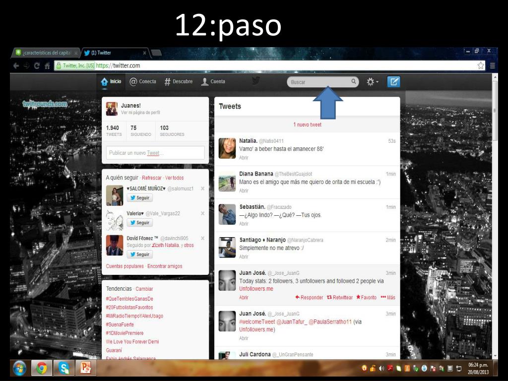 BIOGRAFIA http://www.pcdigital.org/mis-pros-y-contras-a-twitter/ http://www.google.com.co/search?gs_rn=25&gs_ri=psy-ab&pq=estadistica&cp=19&gs_id=1x&xhr=t&q=estadistica+de+twitter&bav=on.2,or.r_qf.&bvm=bv.50768961,d.eWU&biw=1280&bih=687&um=1&ie=UTF-8&hl=es-419&tbm=isch&source=og&sa=N&tab=wi&ei=kLgSUovTJ4SE9gSq0IDwBw#bav=on.2,or.r_qf.&fp=752ea316a5a21b59&hl=es-419&q=promedio+de+tweets+diarios&sa=1&tbm=isch&um=1&facrc=_&imgdii=_&imgrc=dkA77UEjbQRgiM%3A%3BTDCmQ5gbkSLiSM%3Bhttp%253A%252F%252Fcarloscortes.com.co%252Fwp-content%252Fuploads%252F2012%252F03%252FLa-Patria-Tweets-Carlos-Cort%2525C3%2525A9s.jpg%3Bhttp%253A%252F%252Fcarloscortes.com.co%252Fconocimiento-2%252Farticulos%252Fmarketing-articulos-conocimiento%252Fmarketing-marketing-articulos-conocimiento%252Frapida-mirada-a-los-canales-de-twitter-de-la-tarde-la-patria-y-el-diario-del-otun-eje-cafetero-colombiano%3B398%3B316