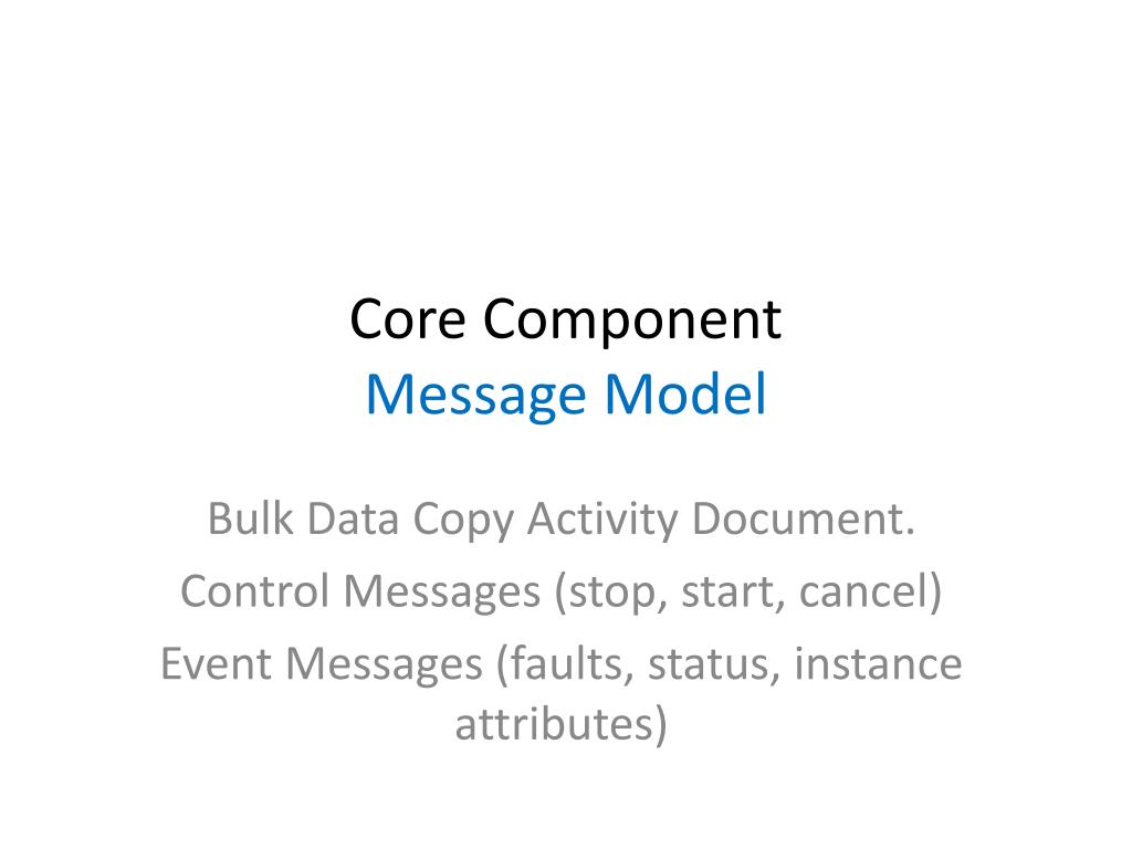 Core Component Message Model Bulk Data Copy Activity Document. Control Messages (stop, start, cancel) Event Messages (faults, status, instance attributes)